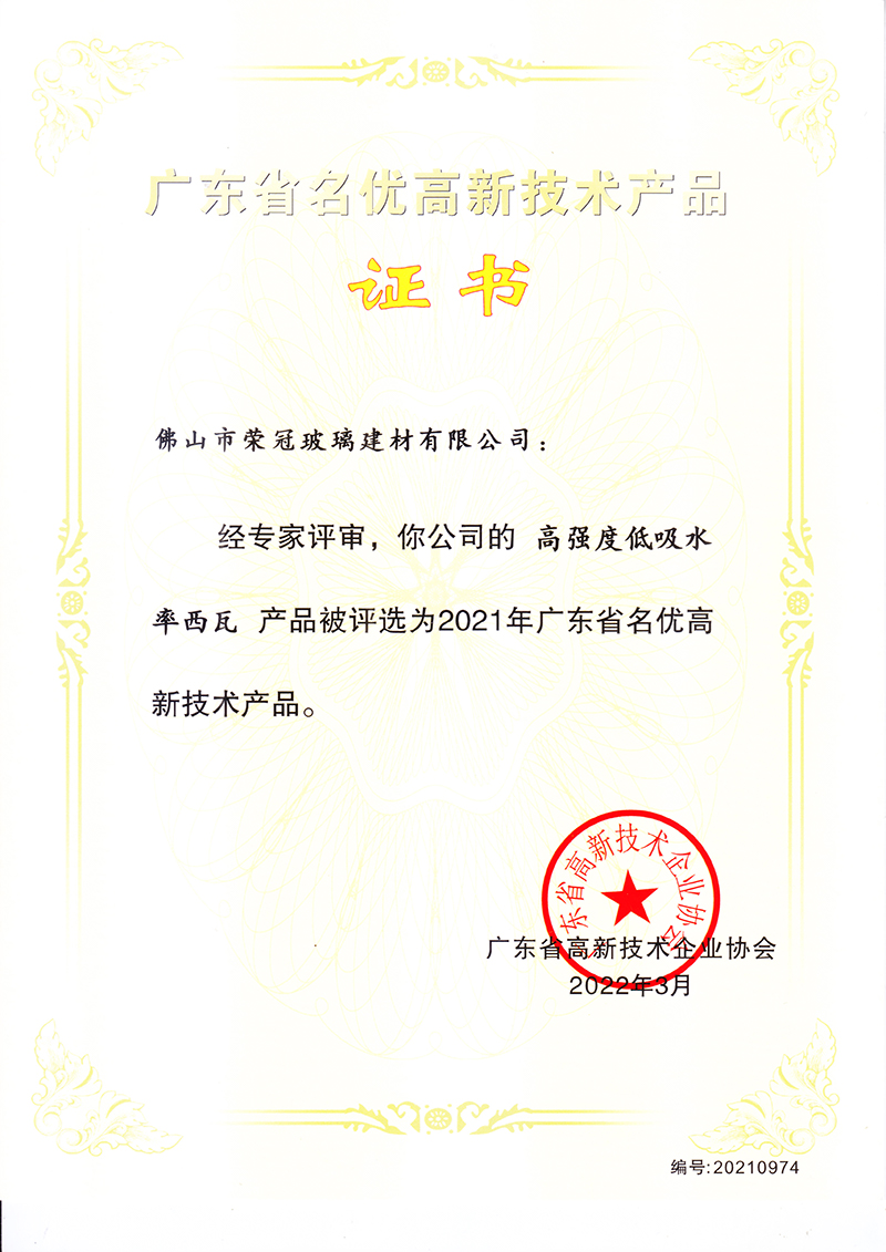 5月公司名稱由“廣東三水市榮冠玻璃馬賽克有限公司” 正式更名為“佛山市榮冠玻璃建材有限公司” ; 11月 微晶石分廠第二條隧道窯生產線正式投產; (2011年1月微晶石分廠因公司發展規劃,正式停止生產。) 12月公司首次通過了ISO9001:2000國際質量管理體系認證;