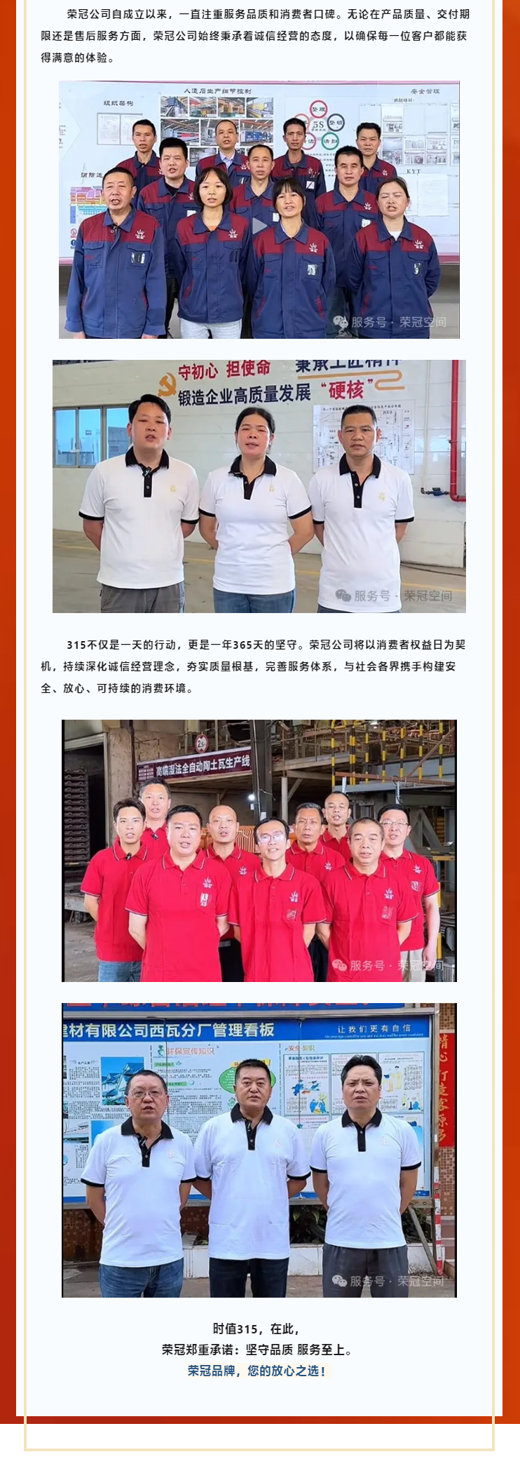 質量護航,堅守315,榮冠一直在行動